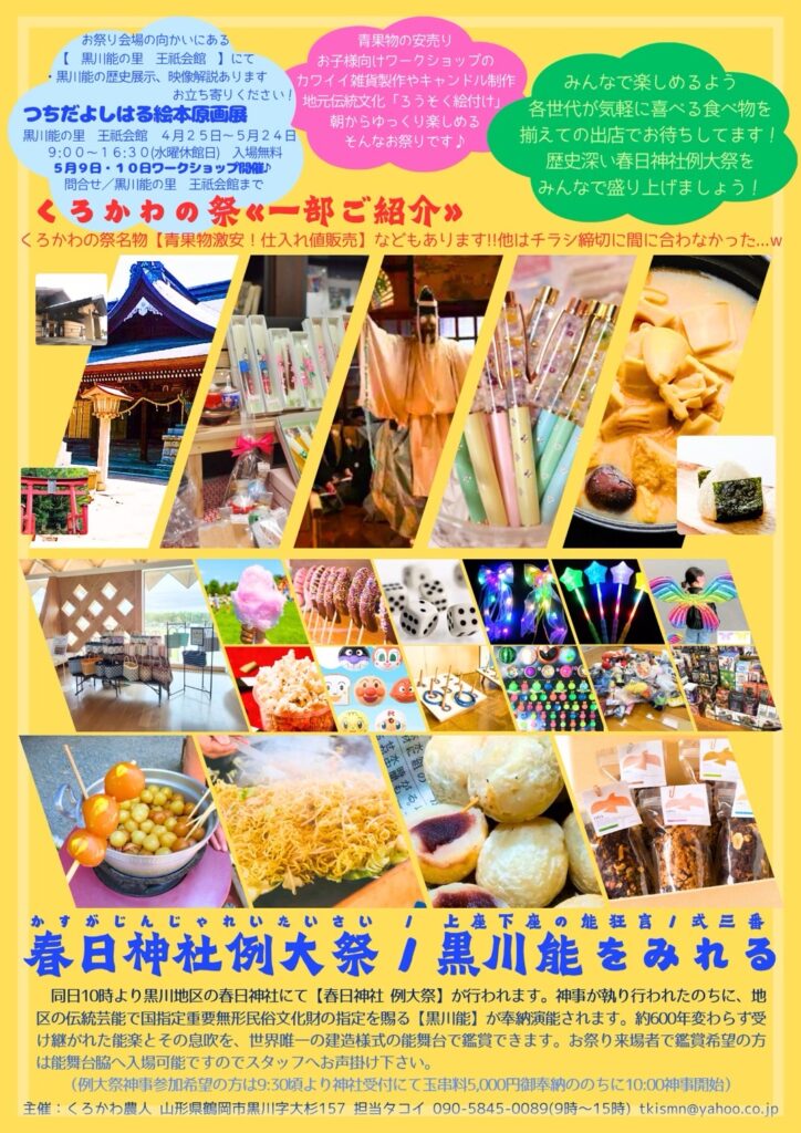 In conjunction with the Annual Grand Festival held at Kasuga Shrine on May 3, 2026, we will be hosting the “Kurokawa Festival (Traditional Fair)” within the shrine grounds.
